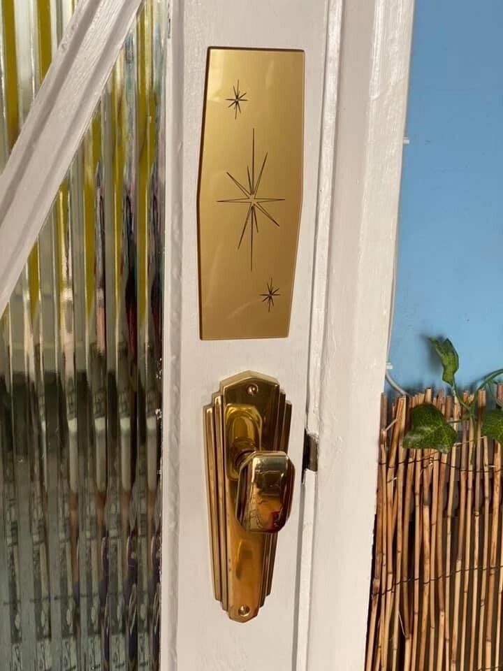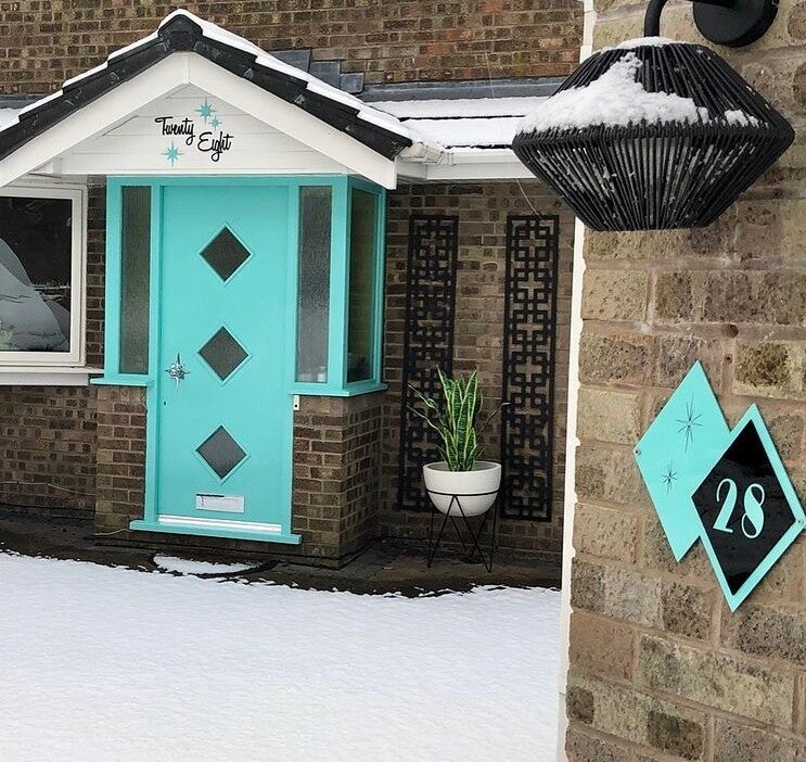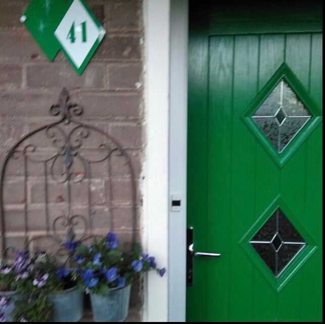 Customer painted her wall plaque of a lady to match her Door Number. Great match and work.