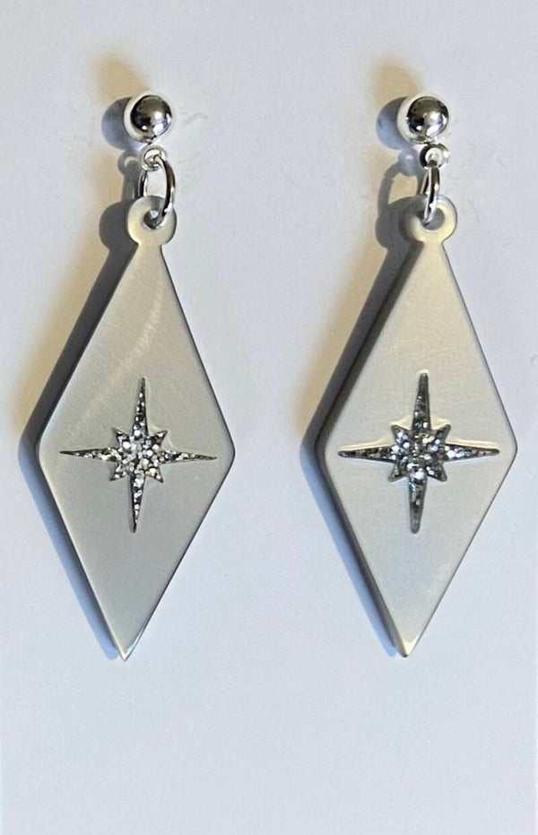 Stylelite Harlequin earrings in a Marble material with silver glitter Atomic starburst centre