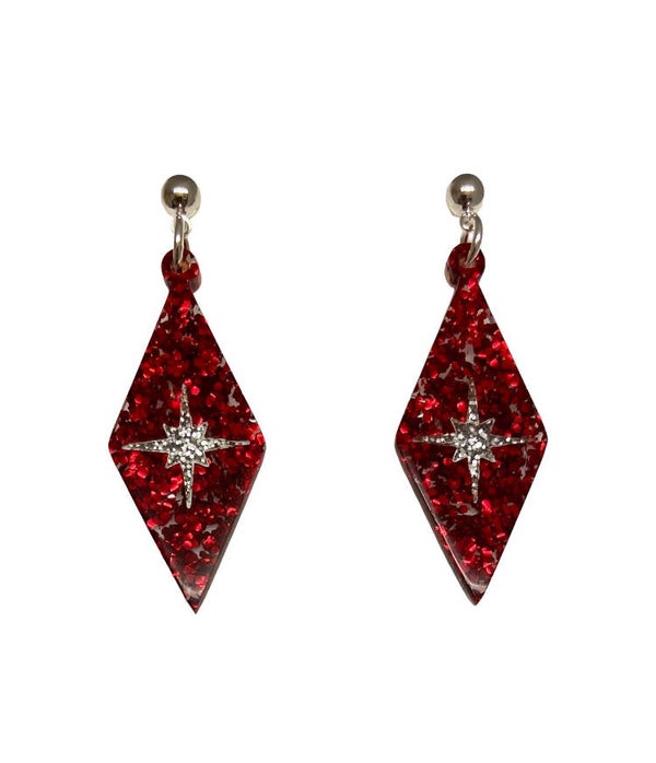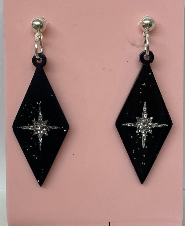 Harlequin Earrings in Various Glitter materials with Atomic starburst centres