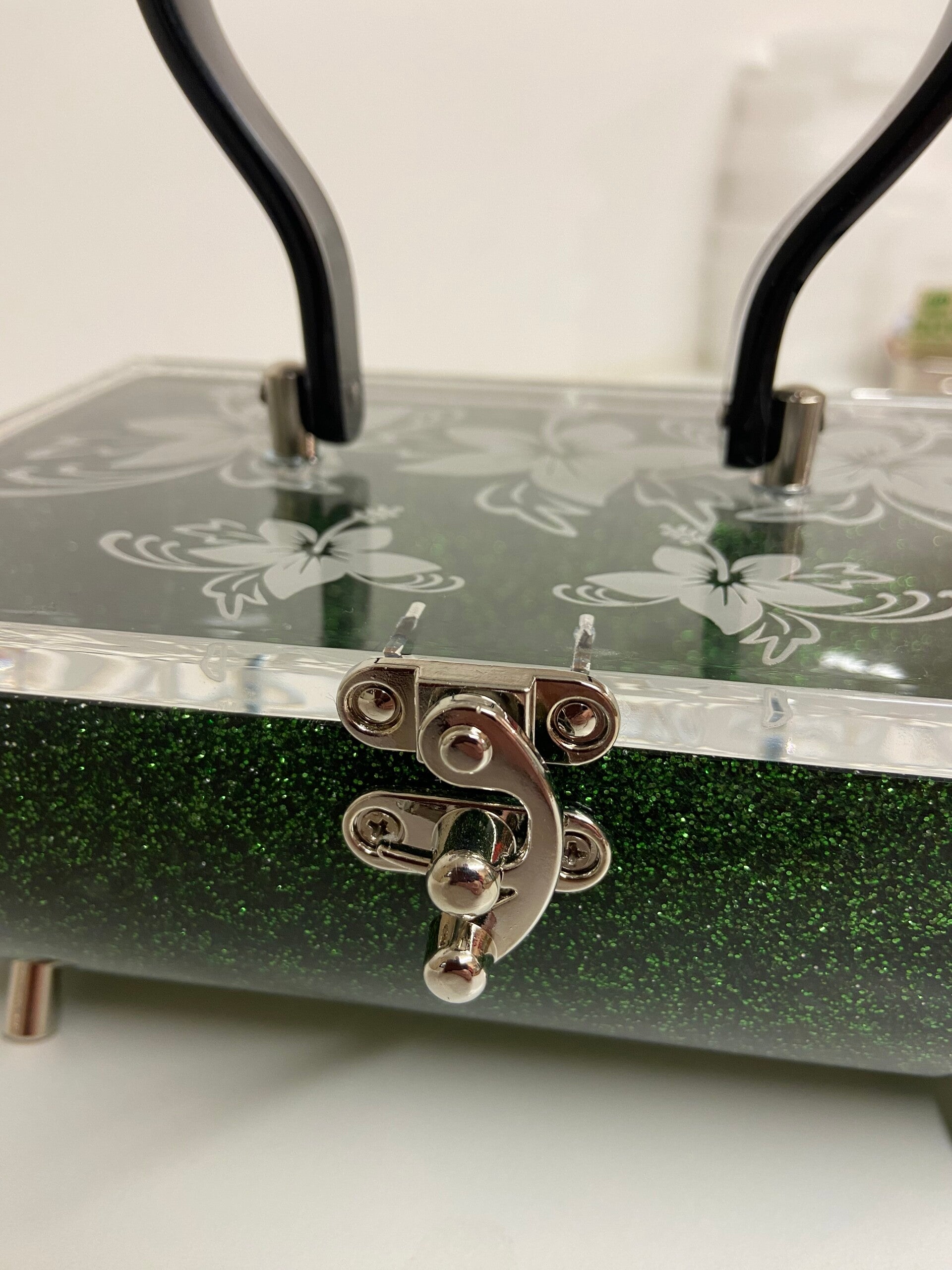 Half Barrel Lucite style Purse in Moss Green Glitter