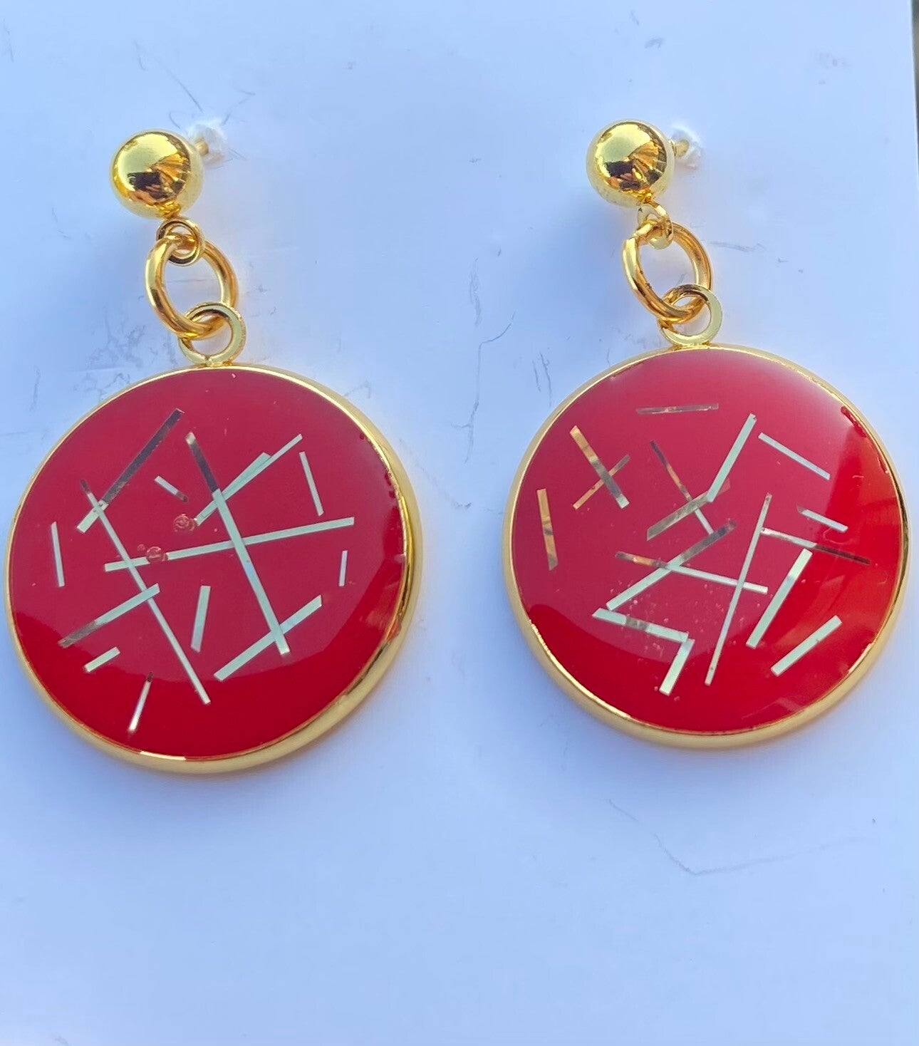 Various colours with gold or silver Confetti set in Gold or silver coloured 20mm Disc with ball studs (please see individual photos for colour options)