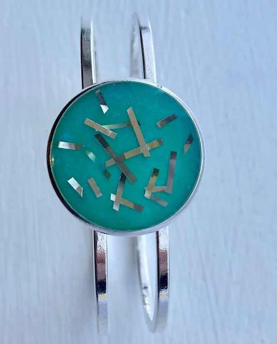 Beautiful Disc style 1950’s Confetti style Clamper Bracelet in various colours in a gold or silver clamper (see individual photos for clamper colour)