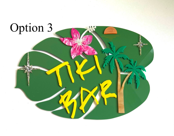 This Tiki Bar sign has all the features you would expect for your Tiki Room set on a Banana Leaf.