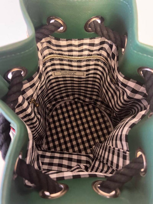 Vinyl Duffle bag in a Dark Green with Black Fringe and Tassles.