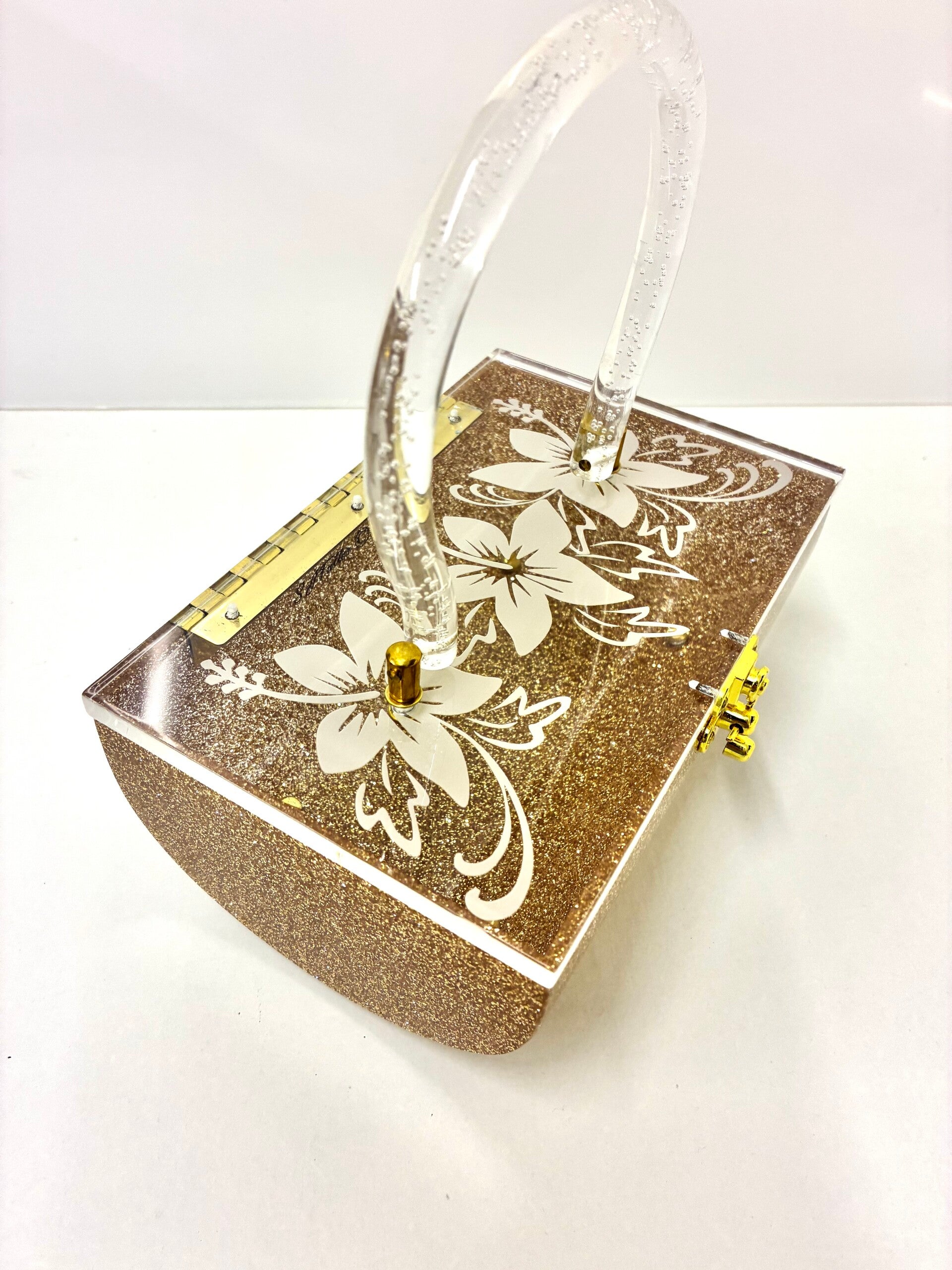 Half Barrel Lucite style Purse in Gold Glitter