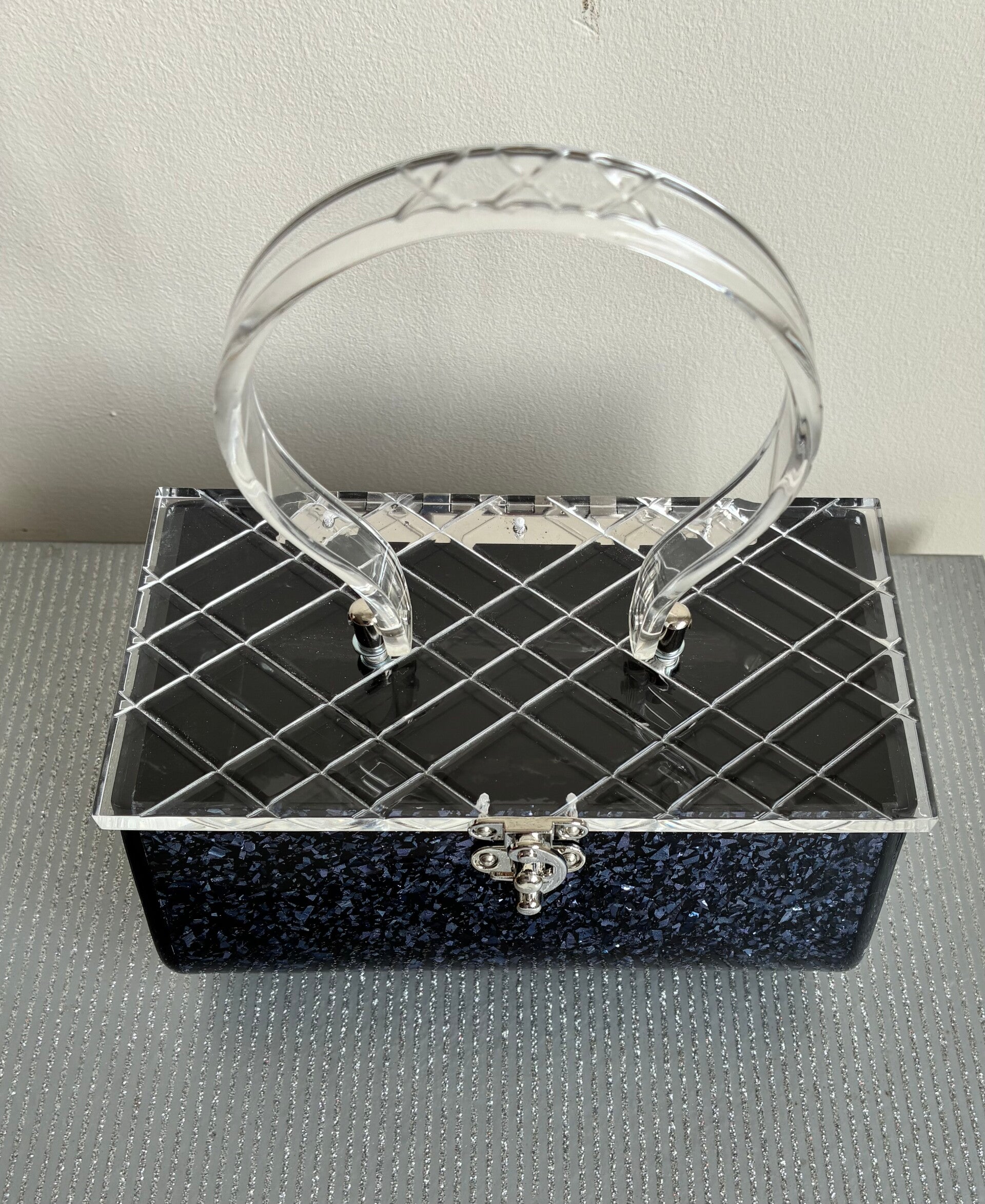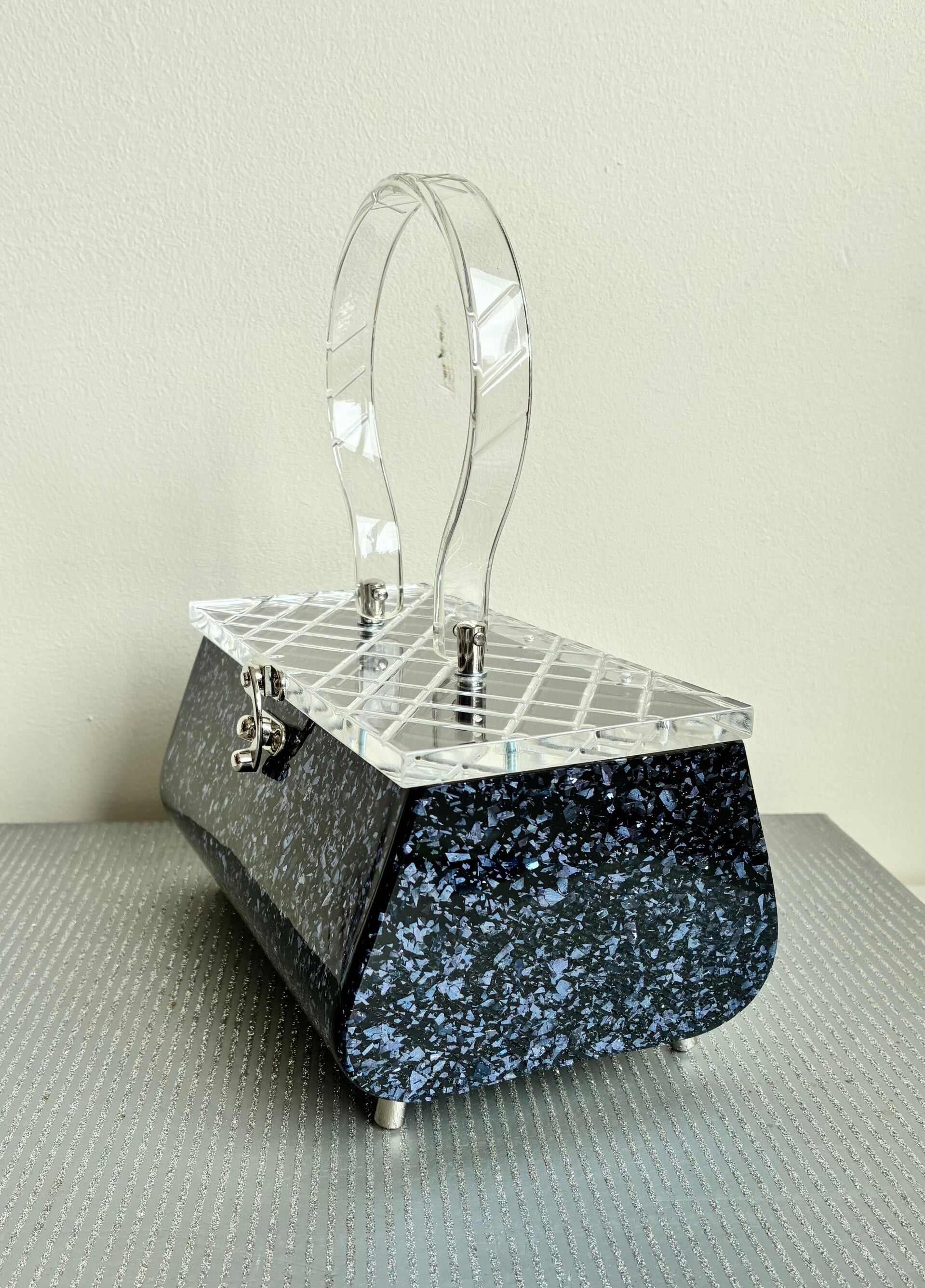 Constantine Lucite style Purse in a Midnight blue Glitter