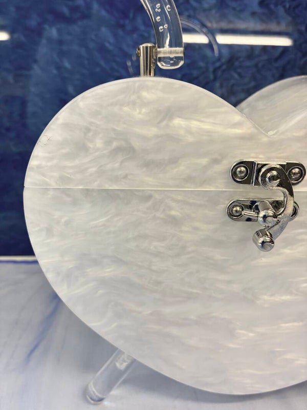 Heart Lucite style purse. White Pearl Marble