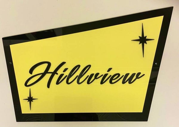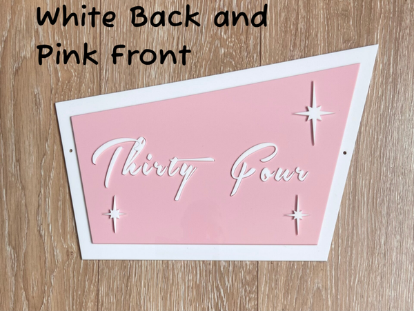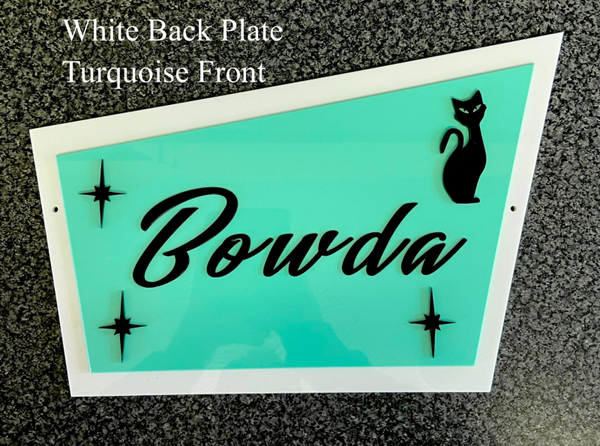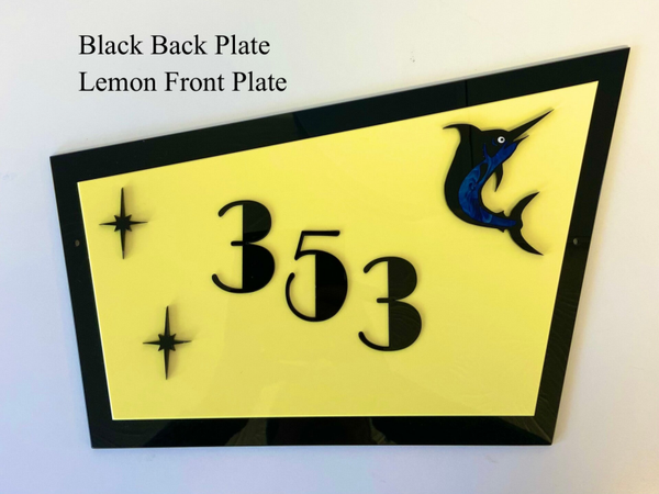 Set on a back plate wit your colour choice, and with standard colour lettering set into the front plate normally to match the back plate colour.