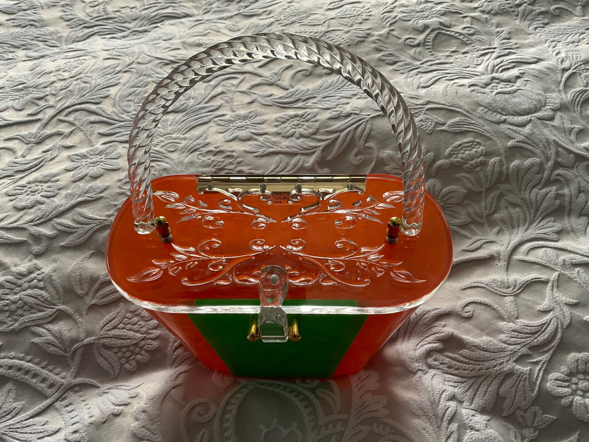 1950’s Lucite handbag. Thank you is absolutely fantastic. I’m totally over the moon with it. It matches my shoes perfectly. I sent you a picture of the bow on my shoe and you have recreated it perfectly, the design and craftsmanship is incredible. I can’t thank you enough and so thrilled with it.