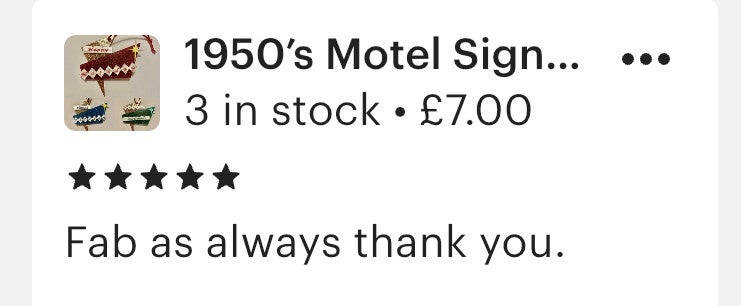 Really lovely sellers and products, and quick with sending orders out!! The products are always amazing quality and they have a high standard of customer service which is always really appreciated. It’s always a pleasure to buy from Si Line Vintage!!